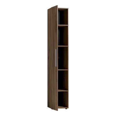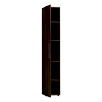Шкаф для белья поможет подростку рассортировать и держать в порядке свои вещи. Узкий и высокий шкаф-пенал с четырьмя полками, регулируемыми по высоте. Глухой фасад в декоре Дуб Табачный с ручкой из массива цвета серый металлик. Шкаф собирается как на левую, так и на правую сторону. Для надежности рекомендуем крепить шкаф к стене на подвесы.