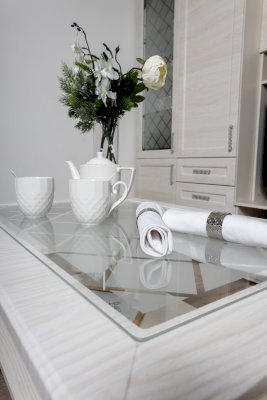 Стол журнальный - часть серии Александра, послужит прекрасным дополнением к мебели. Стекло с пескоструйным рисунком делает столик уникальным и воздушным.