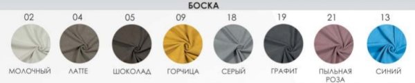 Обивка: Ткань (Велюр Боска), Ткань (Велюр Velutto), Ткань (Велюр Nova), Ткань (Велюр Grand)