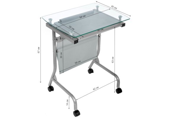 Компьютерный стол Riko - это компактный и мобильный стол на колесиках, который идеально подходит для тех, кто хочет максимизировать использование своего рабочего пространства. Столешница выполнена из прочного и прозрачного стекла, что придает ему современный и стильный вид. Подставка для клавиатуры выполнена из ЛДСП, что обеспечивает дополнительную прочность и долговечность. Каркас столика выполнен из металла, что гарантирует его стабильность и надежность. Кроме того, стол на колесиках, что позволяет легко перемещать его по комнате. Колеса также имеют функцию стопора, которая обеспечивает дополнительную безопасность и предотвращает случайное движение стола. В целом, стол Riko - это отличный выбор для тех, кто ищет компактный и мобильный стол для работы на компьютере.