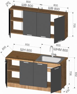 Шкаф верхний: 800х705х300 мм