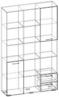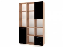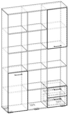 Применение задней стенки из ЛДСП (в ячейках с ящиками и фасадами) позволяет использовать данный стеллаж для зонирования пространства (чтобы предотвратить опрокидывание, необходимо обеспечить крепление стеллажа к стене).