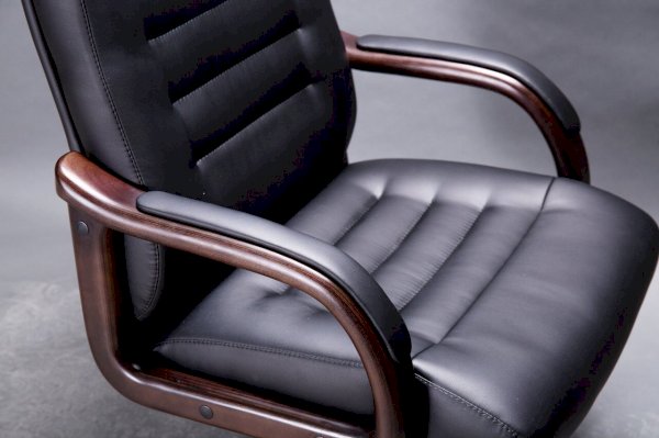 Кресло с высокой спинкой, с подлокотниками прямоугольной замкнутой формы с мягкими накладками обитыми в цвет кресла.