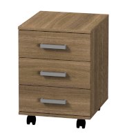 Тумба с хорошей вместимостью, имеет три выдвижных ящика полного выдвижения. Колесные опоры придают модулю необходимую мобильность.