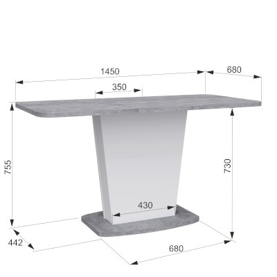 Длина разложенного столика, мм 1450