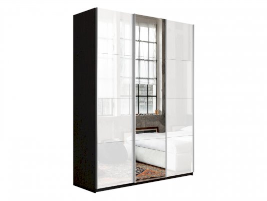 Шкаф-купе 3-х дверный Прайм Белое стекло/Зеркало/Белое стекло 1800х2300х570 мм Венге