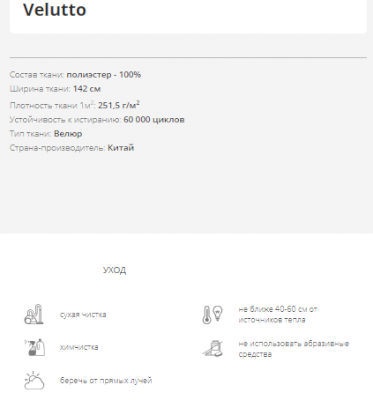 Обивка Ткань (Velutto, Romeo, Kiton)