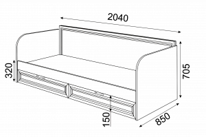 • Кровать имеет 2 выдвижных ящика.