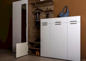 Универсальный модуль этой прихожей может быть дополнен шкафом для одежды.
